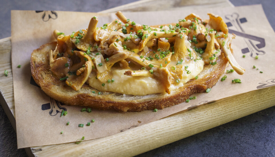 - Legg smørbrødene på et brett med bakepapir på, og stek dem midt i ovnen på 200 grader i 10 minutter.