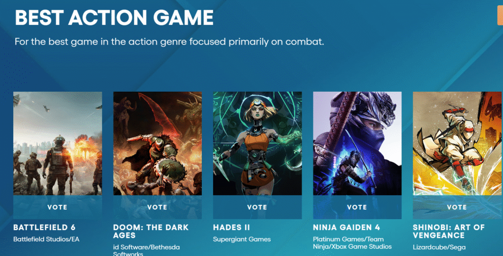 som du kan se her er det 5 spill som kan vinne beste action game.